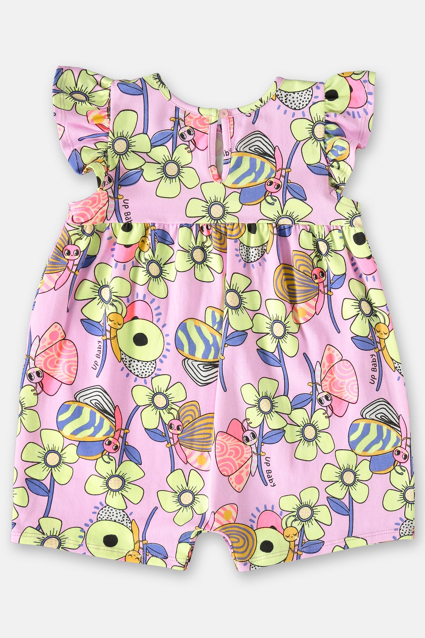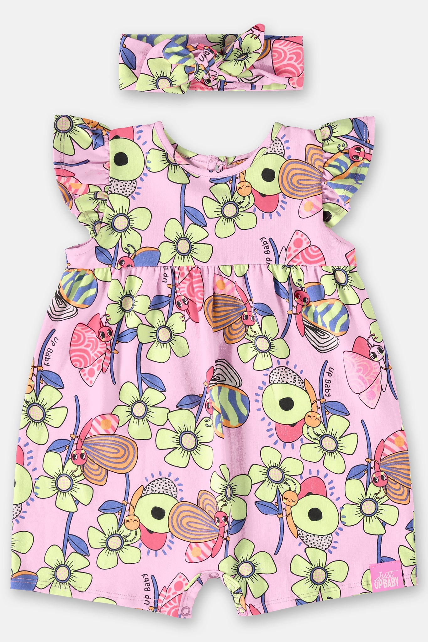 We present the Printed Jumpsuit and Hairband Set for Baby Girl, a fun and practical choice to dress your little one with a lot of charm and comfort. This set consists of a printed jumpsuit with charming details and a coordinating hairband, perfect for adding a special touch to your baby's look. It has flared short sleeves, adding a touch of delicacy and movement to the look. The closure on the back of the jumpsuit is a drop with a button, which is practical and secure, ensuring that the garment stays in place. The opening between the legs of the romper is designed with snap buttons to make it easier to change diapers, making it convenient for parents. The coordinated hairband completes your baby's look and can be used in a variety of ways to create different styles. This set is a perfect combination of style and practicality, ensuring that your little one is always fashionable and ready to have fun.